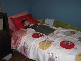 Coen, it seems, it not one to be motivated. He is a self motivator. Which means he'll do it when he darn well pleases. All we needed to do was put the bed in his room, make it seem super cool and important and then avoid letting him have it. It WORKED! Muahahahaha!! Who's the smartest monkey in the cage?!?! ahem...excuse me....moving on.